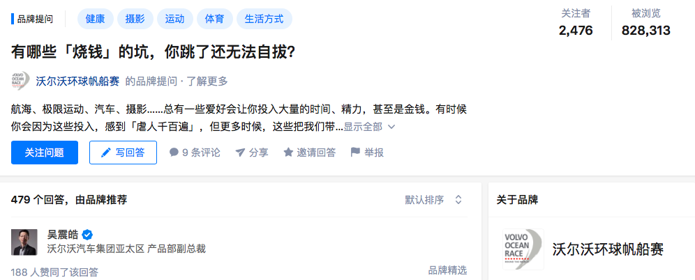 在知乎平台品牌提问“有哪些「烧钱」的坑,你跳了还无法自拔”,引发站内对「烧钱」爱好话题的关注热议与思考,4位知乎KOL参与回答,同时精准吸引了包括各类爱好用户,医生、旅游达人、合伙人、古史爱好者等知乎站内优秀用户参与,曝光达14744793次,被知乎日报主动收录,回答关注2468人,回答互动474个,浏览量829718次。